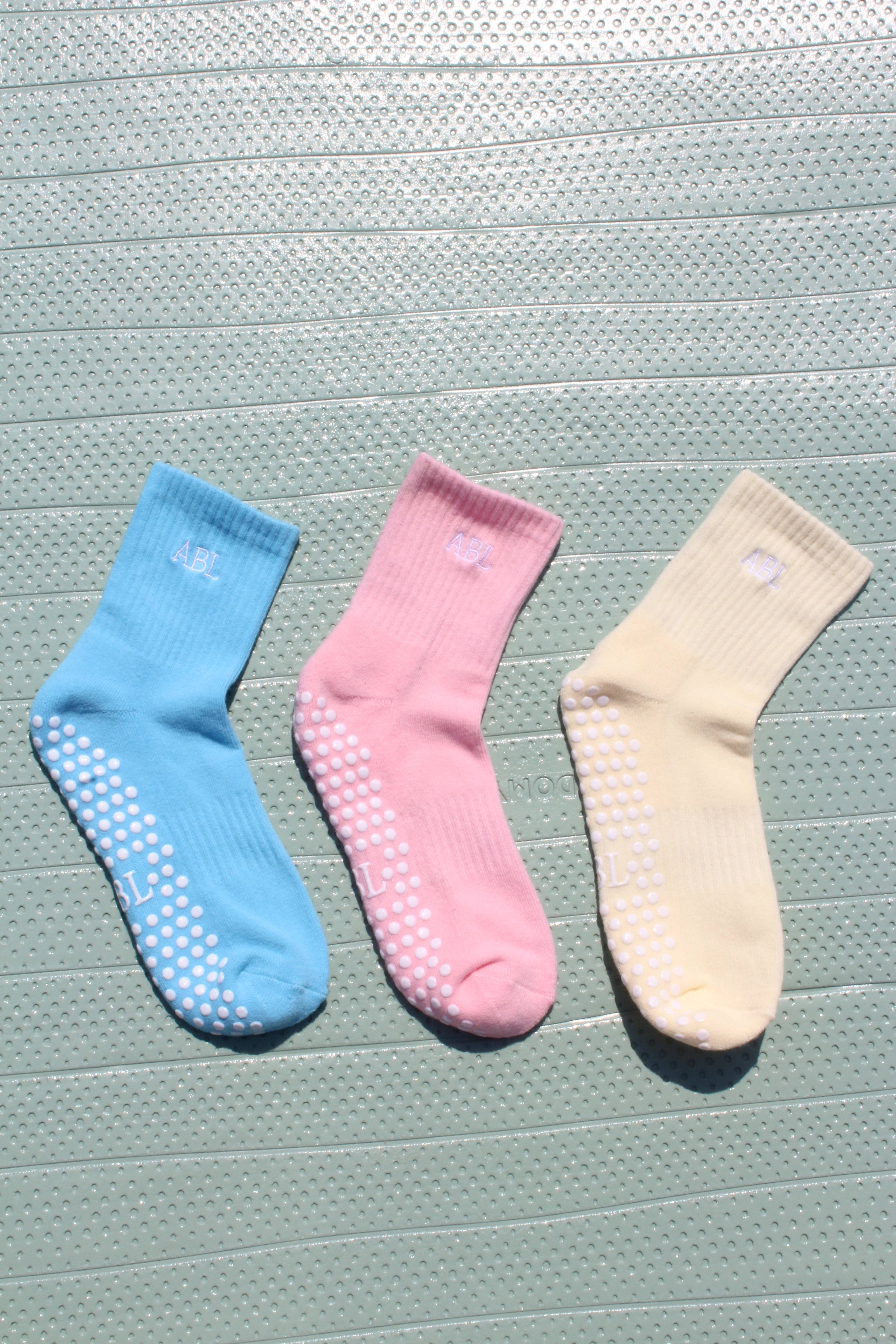 Now, one year later, I’m training to teach fully comprehensive Pilates, juggling flight attendant life while building this brand one step at a time. ABL is my Pilates grip sock passion project — born from the belief that cute, functional socks are essential for any class.